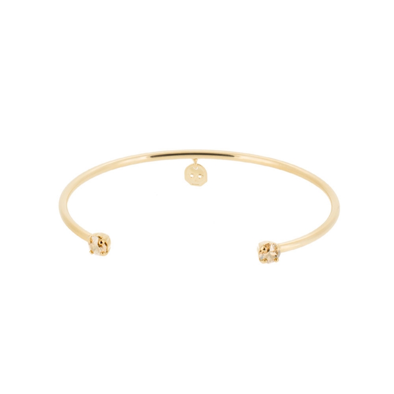 Brazalete chapado en oro amarillo y montado con dos cristales de Swarovski® de 5 mm en color Golden Shadow.