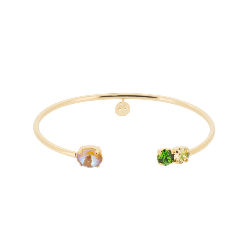 Brazalete chapado en oro amarillo y montado con cristales de Swarovski® de diferentes formas en gama de ocres.